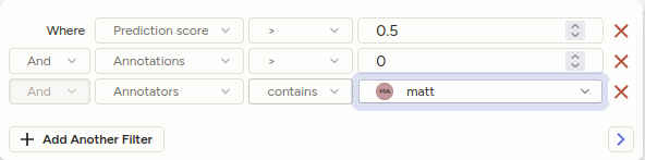 - Filter the Data Manager page to show only the data you want to delete. For example, specific annotations, or tasks annotated by a specific annotator.